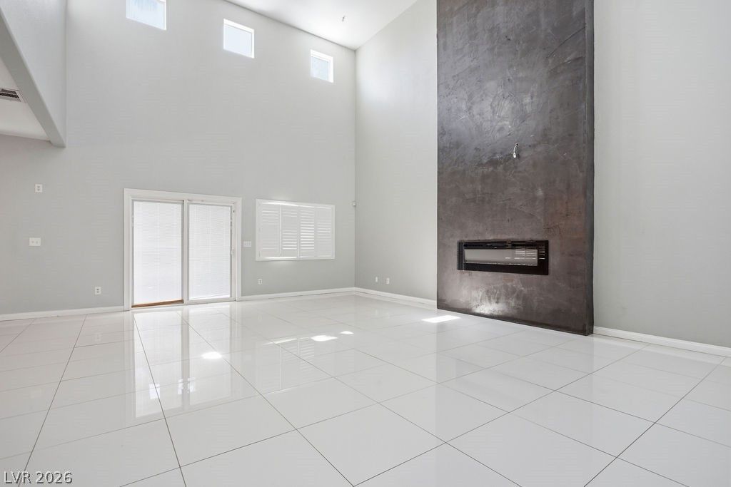 Stunning Southwest Las Vegas home with a sparkling pool! Nestled on a quiet cul-de-sac in a highly desirable area with no HOA, this beautifully updated 3-bedroom, 3-bath residence offers the perfect blend of style and comfort. Step into the great room featuring soaring ceilings, a sleek modern fireplace, elegant shutters, and skylights that fill the space with natural light. The upgraded kitchen is both stylish and functional, complete with a breakfast bar, generous counter space, and ample pantry storage. A spacious dining area flows seamlessly from the great room. Sliding doors lead to a private backyard retreat with a refreshing pool and resort-style cabana, perfect for relaxing or hosting gatherings. A convenient half bath is located downstairs. Upstairs, the spacious primary suite features an oversized shower, while two additional bedrooms share a beautifully appointed full bath. An expansive three-car garage provides abundant parking and storage space.
